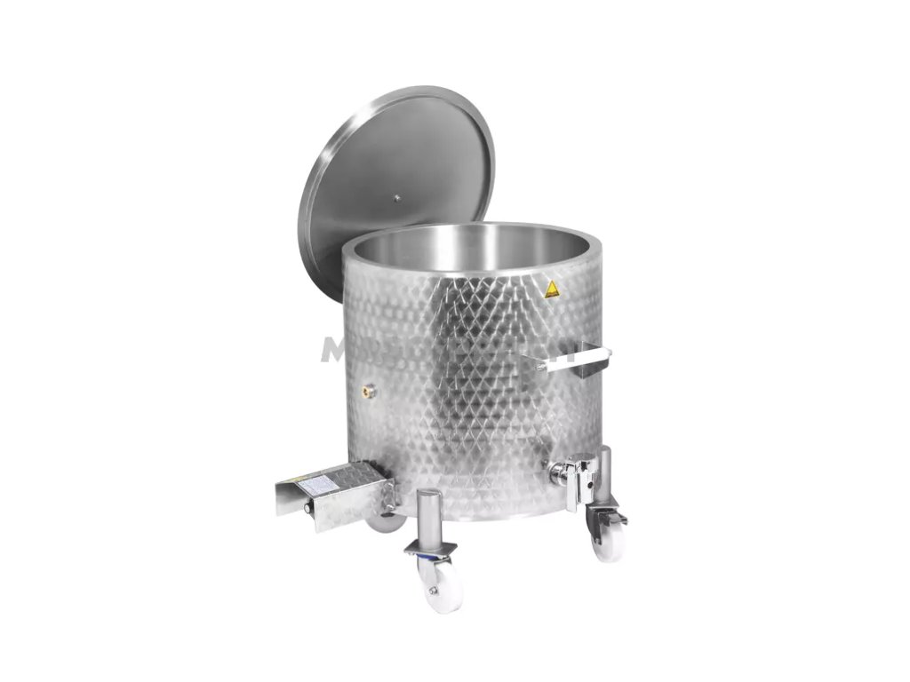 Elektrický kotel glycerinový GL 150F je v celonerezovém masivním dvouplášťovém provedení bez vnější izolace. Glycerinová náplň je umístěna v duplikátorovém plášti. Analogový termostat a vypouštěcí kohout 1 1/4”. Kotel je pojízdný- opatřený třemi kolečky a jedno kolečko je brzděné.