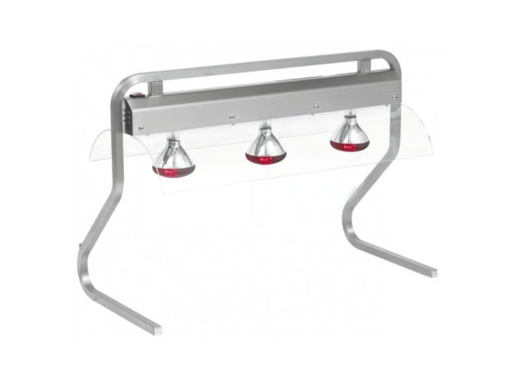 Infra stolní 3/1 AL lampa bez spodní ohřevné desky v nerezovém provedení AISI 304 s otevřeným spodním prostorem umožňujícím umístit nádoby GN 1/1. Infra červené lampy 250 W (v balení dle modelu) umístěné na rampě vybavené spínačem osvětlení.