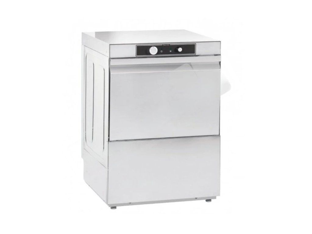 Mycí teplota 60°C / oplachová teplota 85°C, minimalizace ztrát tlaku vody díky výkonnému mycímu čerpadlu (600W) a teploty (bojler až 5,6kW) . Dvouplášťová dvířka komory s mikrospínačem, vybavena dávkovačem oplachového prostředku, dávkovačem mycího prostředku (DD). Provedení napájení Multipower 400V / 6,2kW (možnost servisně přepojit na 230V, příkon 3,4kW)