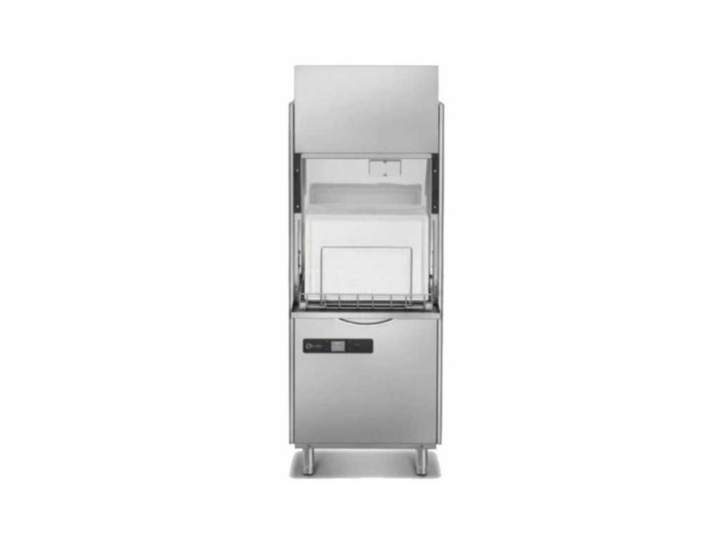 Dvouplášťové provedení výrazně snižuje hladinu hluku a tepelné ztráty (náklady na energie, lepší pracovní prostředí). Velký nerezový zakládací koš (665 x 665 mm) a úložná výška až 860 mm umožňuje mýt podnosy, gastronádoby, pekařské plechy a přepravky (600 x 400 mm). Vysoce účinné mycí čerpadlo zajišťuje dostatečný výkon pro mycí a oplachová rotační nerezová ramena. Bezproblémový chod stroje zaručuje snadné elektronické ovládání s LCD displejem EVO2 s funkcí automatického startu při uzavření zákrytu. Čtyři přednastavené mycí cykly pro různé typy nádobí. Dvě úrovně menu: ovládací a technické (chráněné kódem PIN - servis). Počítadlo denního a celkového počtu cyklů.