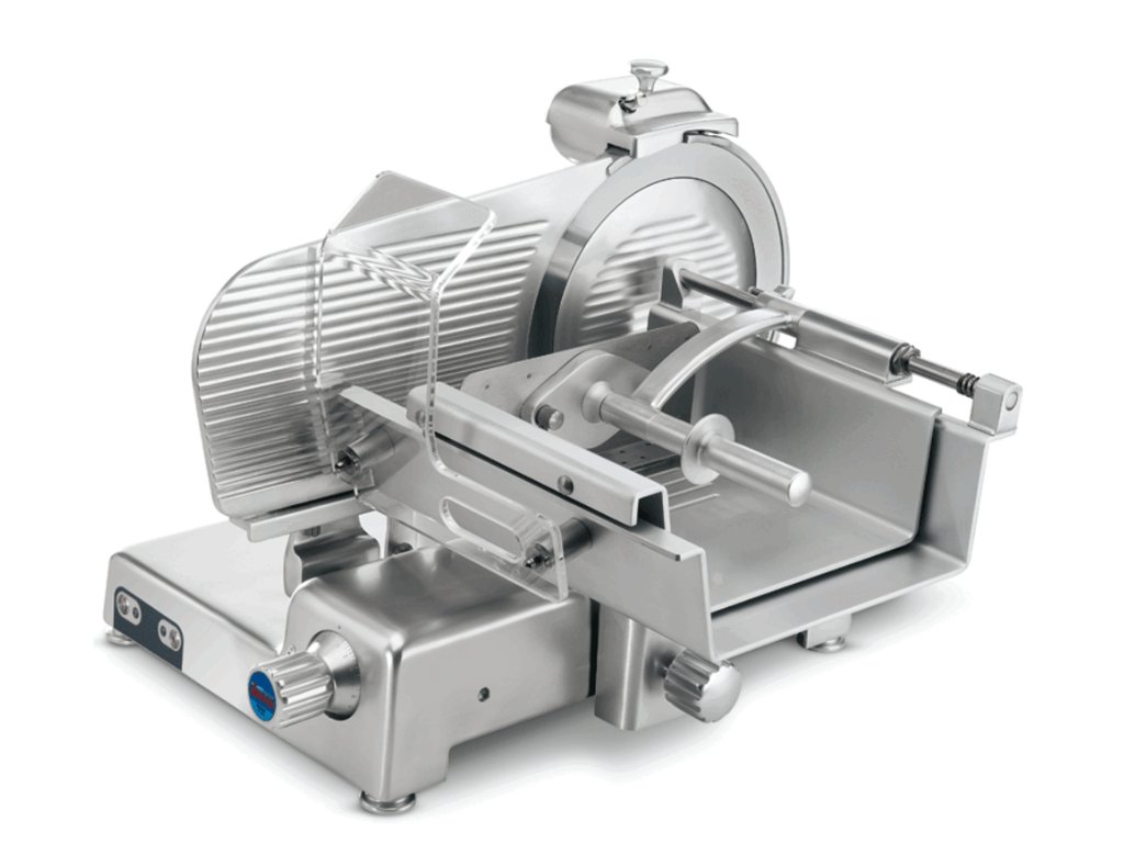 Nářezový stroj Leonardo Evo 370 VCS TOP s uložením posuvného stolu rovně.