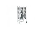 Vozík v celonerezovém provedení jedinečný systém na rovnání talířů s patentovaným talířovým clipem, maximální zatížení na talíř 1 kg, vhodné pro talíře o průměru až 30 cm.