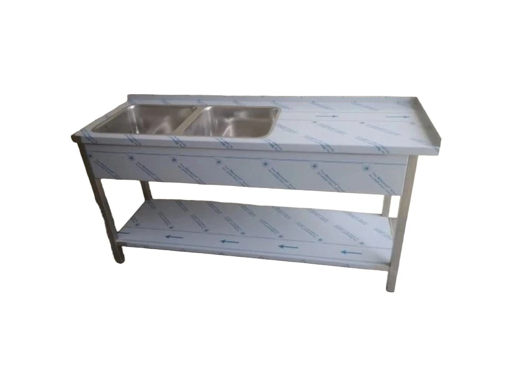 Nerezový mycí stůl dvoudřezový s policí 1600 x 700 x 900 mm ( 2x dřez 400 x 400 x 250 mm)