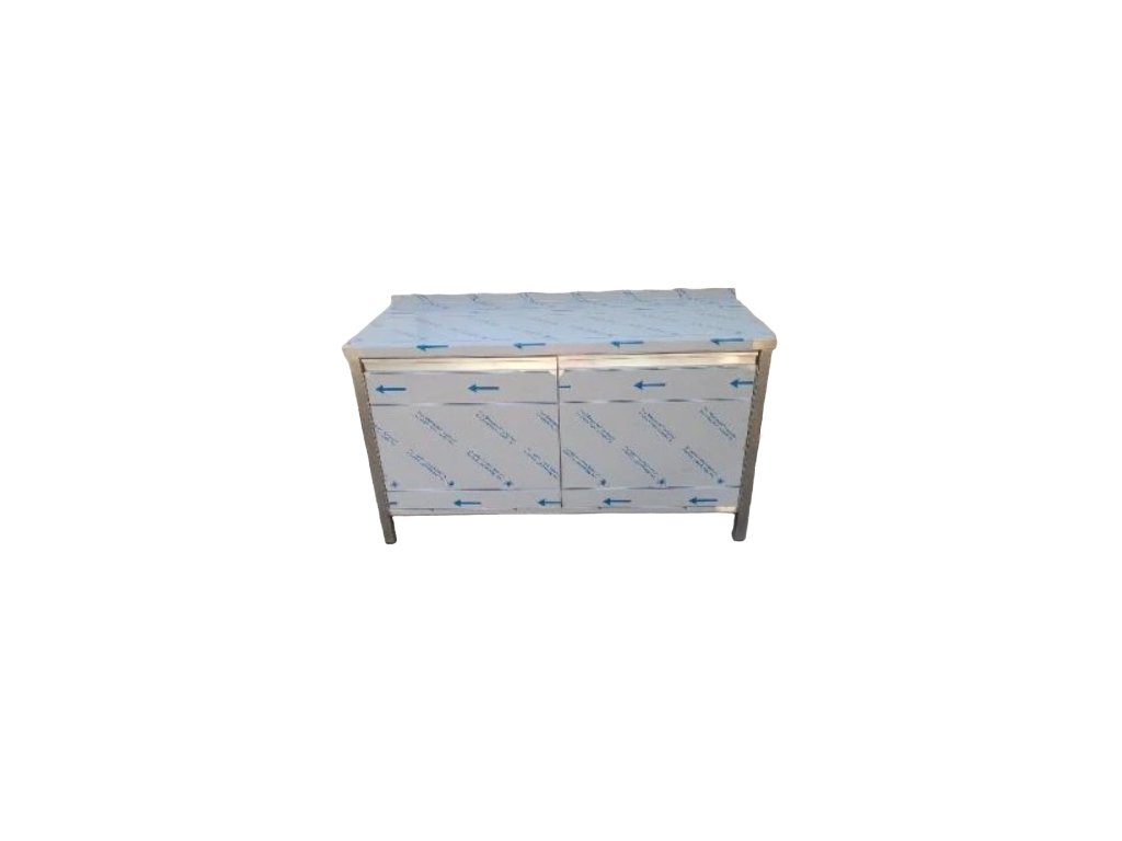 Nerezový pracovní stůl s dvířky a policemi 1100 x 600 x 900 mm