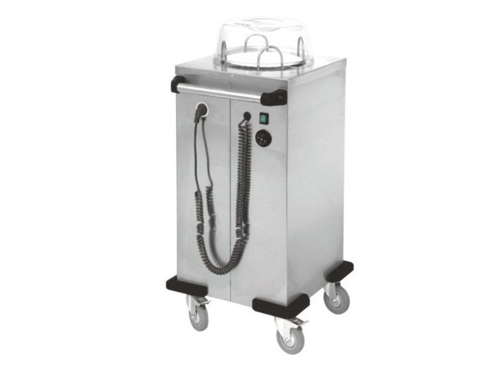 Čtyři stavitelná vodítka zajišťují spolehlivé vedení i talířů s větším průměrem. Výška výdeje se nastavuje v závislosti na hmotnosti talíře (snadnou úpravou počtu tažných pružin). Snadná regulace teploty vnitřního prostoru zásobníku v rozpětí +30°C až + 80°C. Model VOI-V s vnitřním prostorem uzpůsobeným pro vkládání talířů až do průměru 320 mm a vybaven mléčným polypropylenovým zákrytem.