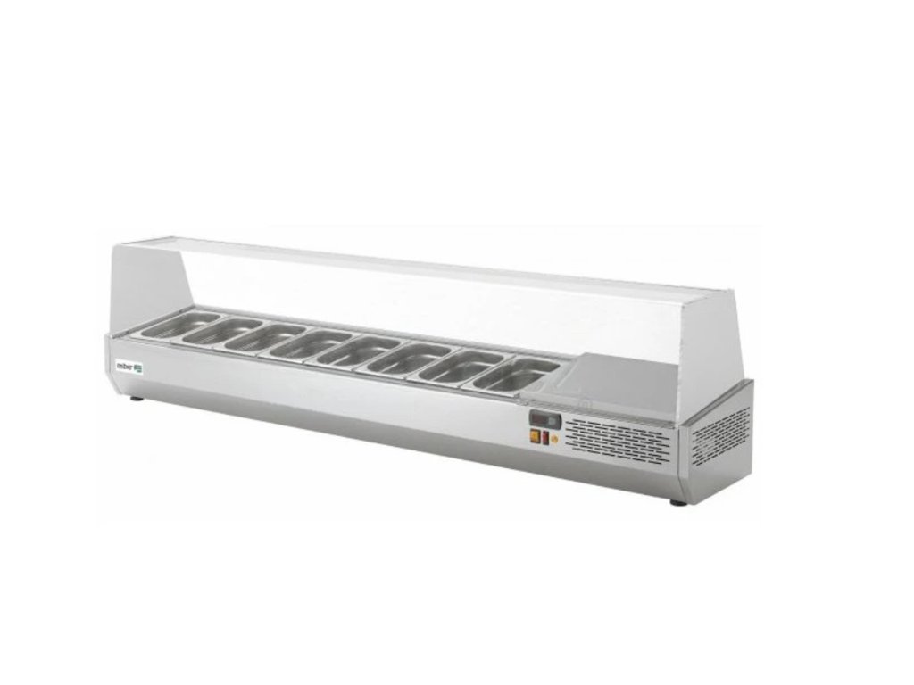 Vitríny se statickým chlazením a vestavěnou jednotkou jsou určeny pro uchovávání chlazených ingrediencí pro přípravu pizzy, salátů, sendvičů a dalších pokrmů v nerezových GN nádobách (velikost dle modelu GN1/4, nebo GN1/3) s hloubkou maximálně 150mm. Intuitivní digitální ovládání (snadné nastavení teploty a parametrů), teplotní rozsah od +2°C do +8°C, klimatická třída IV, světelné tlačítko start-stop, ekologický chladicí plyn: R600 Hydrofluorouhlík (HC), napájecí napětí: 230V1N/50 Hz.