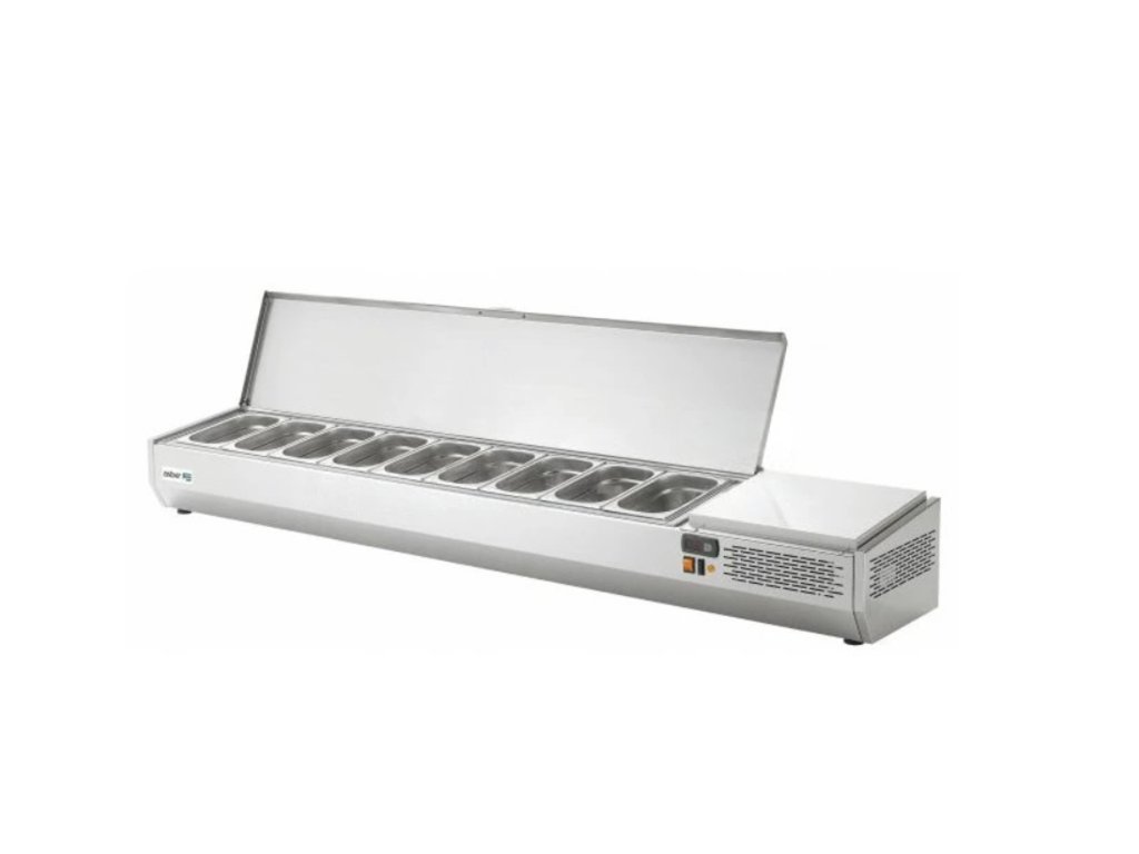 Vitríny se statickým chlazením a vestavěnou jednotkou jsou určeny pro uchovávání chlazených ingrediencí pro přípravu pizzy, salátů, sendvičů a dalších pokrmů v nerezových GN nádobách (velikost dle modelu GN1/4, nebo GN1/3) s hloubkou maximálně 150mm. Intuitivní digitální ovládání (snadné nastavení teploty a parametrů), teplotní rozsah od +2°C do +8°C, klimatická třída IV, světelné tlačítko start-stop, ekologický chladicí plyn: R600 Hydrofluorouhlík (HC), napájecí napětí: 230V1N/50 Hz.