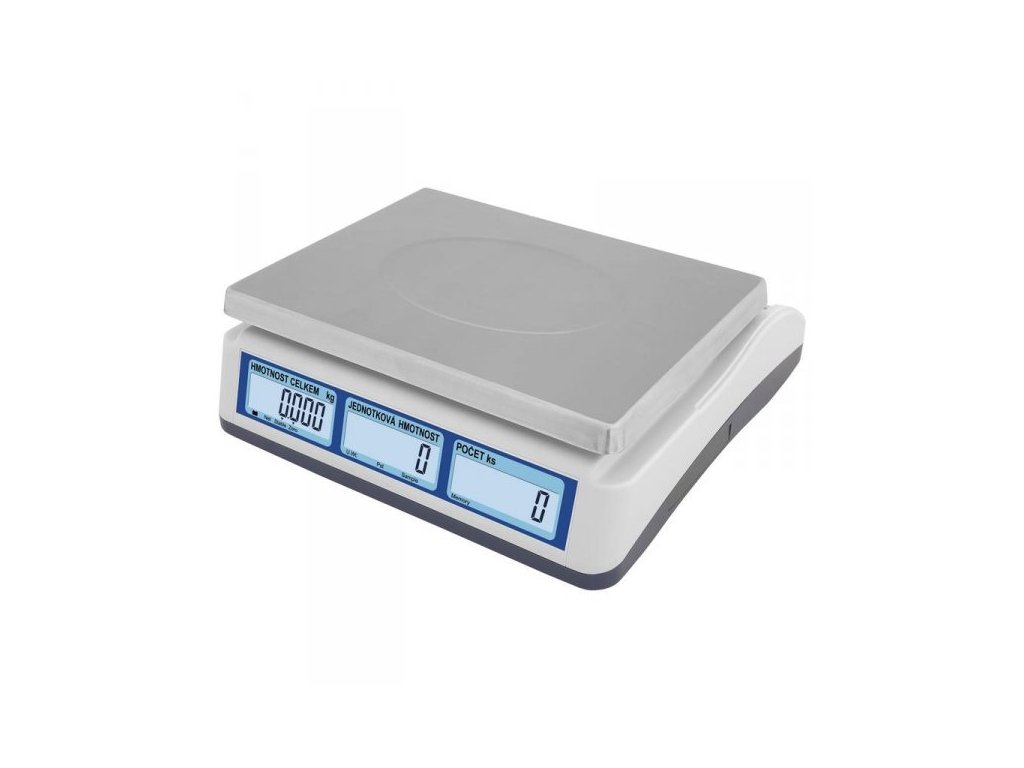 Váha je již od výrobce prvotně úředně ověřená s platností na 2 roky a disponuje jak předním (operátorským) tak zadním zákaznickým displejem. Číslice LCD displeje o výšce 20mm jsou velmi dobře čitelné i díky modrému podsvícení. Bateriový provoz umožňuje snadné přemístění či použití těchto vah při výkonu ve skladech a jiných oblastech s obtížným přístupem k elektrické síti. Samozřejmostí u tohoto typu vah je numerická klávesnice, která umožňuje zadávání libovolného počtu kusů při zjišťování referenční hmotnosti jednoho kusu. Váha má možnost pracovat ve čtyřech režimech, a to: počítání kusů, limitní vážení, limitní počítání kusů a sčítání navážek.