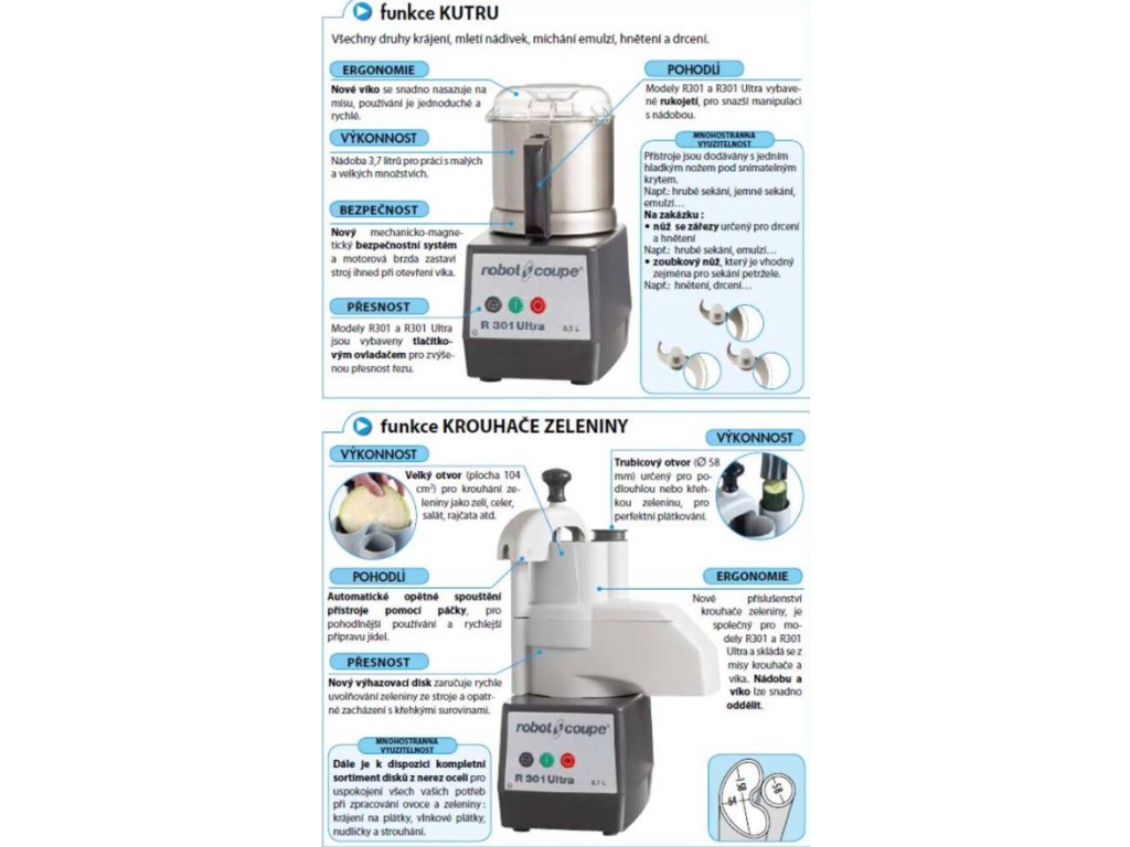 Kombinovaný robot R 301 D ULTRA od francouzského výrobce ROBOT COUPE.