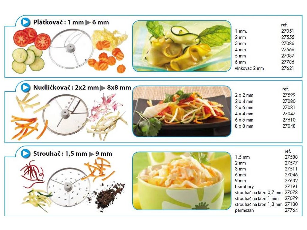 - Plátkuje, vlnkuje, strouhá, nudličkuje.