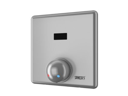 Automatická nerezová nástěnná baterie Sanela SLU 43B na jednu vodu s elektronikou ALS, 6V.
