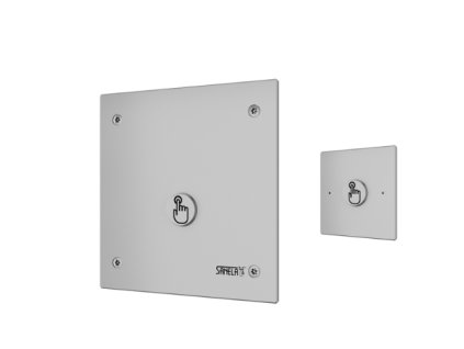 Piezo splachovač WC Sanela SLW 03PA na tlakovou vodu s druhým tlačítkem pro oddálené spláchnutí pro tělesně handicapované se speciálním antivandalovým krytem, 24V DC