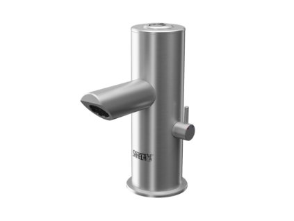 Automatická umyvadlová nerezová baterie Sanela SLU 46MD s dávkovačem mýdla pro teplou a studenou vodu s elektronikou ALS, 230 V AC