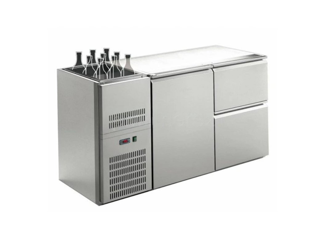 Chladiaci stôl barový REGS-212E s agregátom vľavo (1x dvere, 2x zásuvka / 1570 mm)