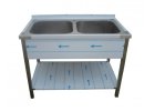 Dvojrez nerezový lisovaný s policou 1200 x 600 x 900 mm, rozmer drezov 2x 500 x 500 x 300 mm