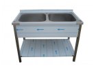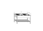 Dvojrez nerezový lisovaný s policou 1000 x 700 x 900 mm, rozmer drezov 2x 400 x 400 x 250 mm