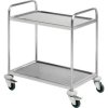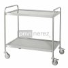 Vozík v nerezovom prevedení s 2 policami, štyrmi otočnými kolieskami (Ø100mm, 2x brzdená). Police s prelisovaným zdvihnutým okrajom a spodnou tlmiacou vrstvou.