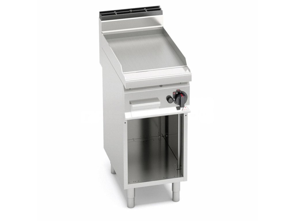 Elektrická hladká platňa E7FL4MP BERTOS s rovnomerným rozložením tepla, ktoré zaisťujú výkonné výhrevné telesá umiestnené pod grilovacou doskou. Vykurovacie teleso je umiestnené pod grilovacou platňou. Regulačné stupne umožňujú nastaviť teplotu 50-300 °C. Kompaktné prevedenie s otvoreným podstavcom. Doska BERTOS je vhodná do všetkých gastronomických prevádzok.