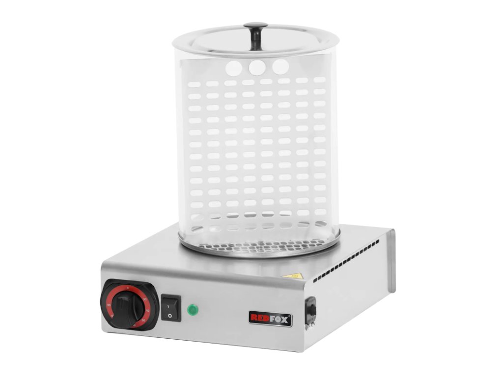 Hot-dog nádoba HD N samostatná sklenená ohrievacia nádoba HD N v celonerezovom prevedení s kontrolkou zapnutia a dierovaným dnom s deliacou lištou nádoby.