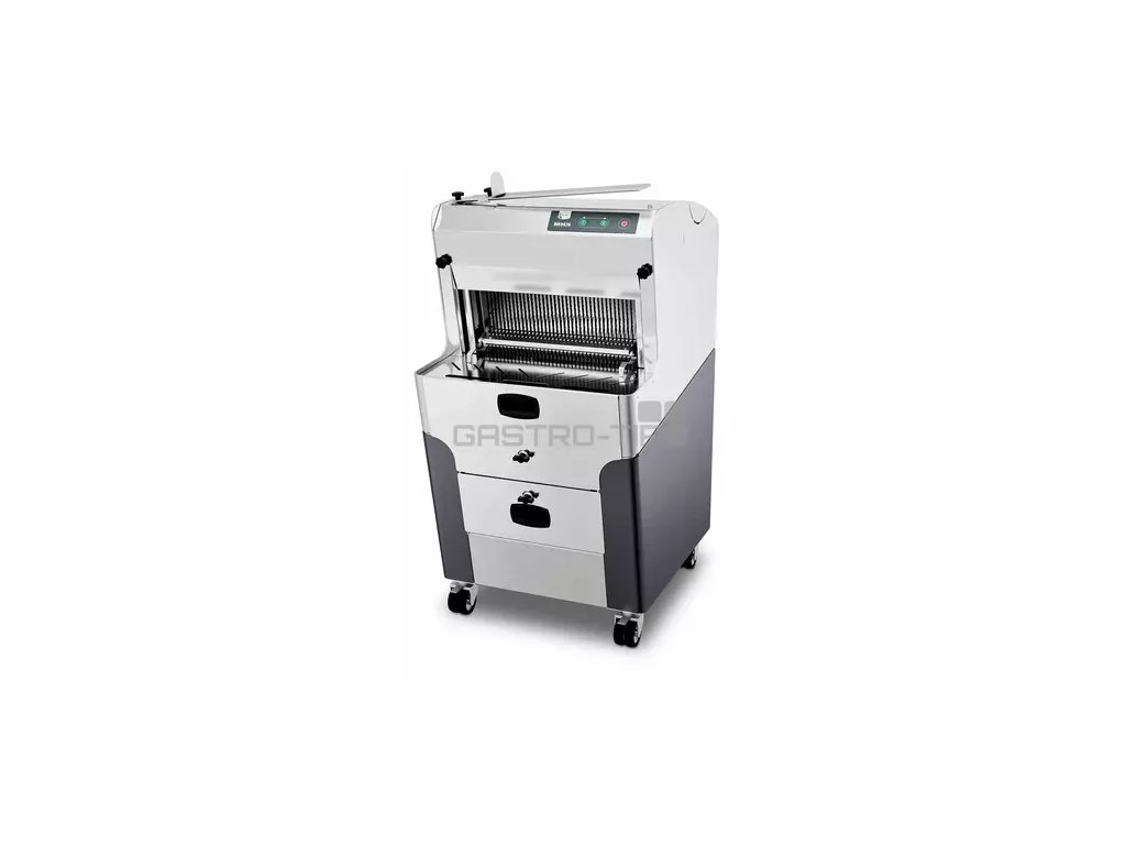 Surovinám k sklzu k nožom dopomáha špeciálna prítlačka. Pri objednaní stroja je nutné si zvoliť pevne danú rozteč, teda aké silné budú vaše plátky. Voliť môžete z 9/10/11/12/13 a 14 mm. Ostré oceľové nože s olejovaním (chránený patentovaný systém bez olejovej pumpy) s pevne danou silou rezu sa dajú do pohybu ihneď, ako spustíte jedno z dvoch zelených tlačidiel na plátkovanie (možno zvoliť z dvoch rýchlostí posuvu podľa druhu chleba pre zvlášť starostlivé krájanie). Zanecháva len čisté rezy bez stôp. Po rozkrájaní sa prístroj automaticky vypne.