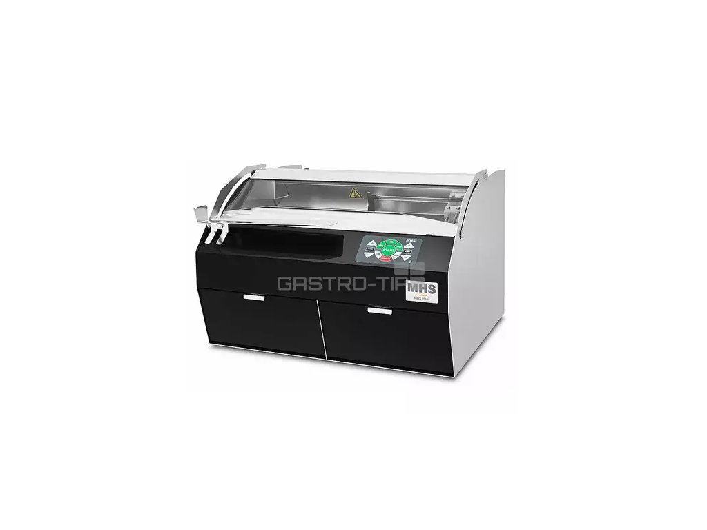 Po nakrájaní pečiva je pred ďalším krájaním nutné narezané plátky z prístroja odňať. Vkladacia a odoberacia klapka prechádza cez prístroj. Pri rezaní je veľmi tichý . Špeciálna MHS čepeľ zabraňuje vzniku hluku už od začiatku celého krájania. Vzhľadom k bezolejovému rezaniu a prednému odnímateľnému krytu (jednoduchá údržba lopatiek a reznej komory – stačí iba otočiť skrutkovací kľúč a komoru vymiesť) sa stroj ľahko čistí.
