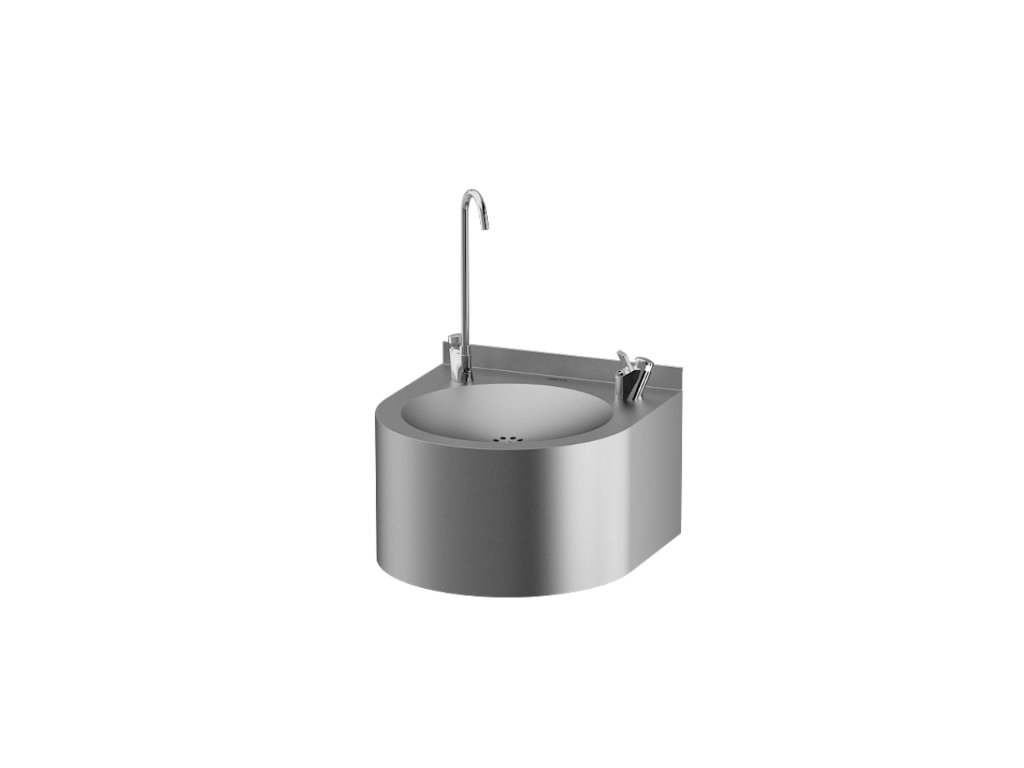 - závesná nerezová pitná fontána s tlačnou armatúrou a armatúrou na napúšťanie pohárov