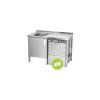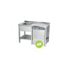 Nerezový pracovný stôl s drezom na ľavej alebo pravej strane, pre umývačky riadu a skla.