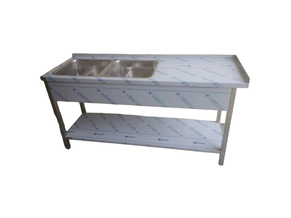 Stôl umývací nerezový dvojdrezový s plochou a policou, rozmer (šxhxv): 1800 x 700 x 900 mm (drez 500 x 500 x 250 mm