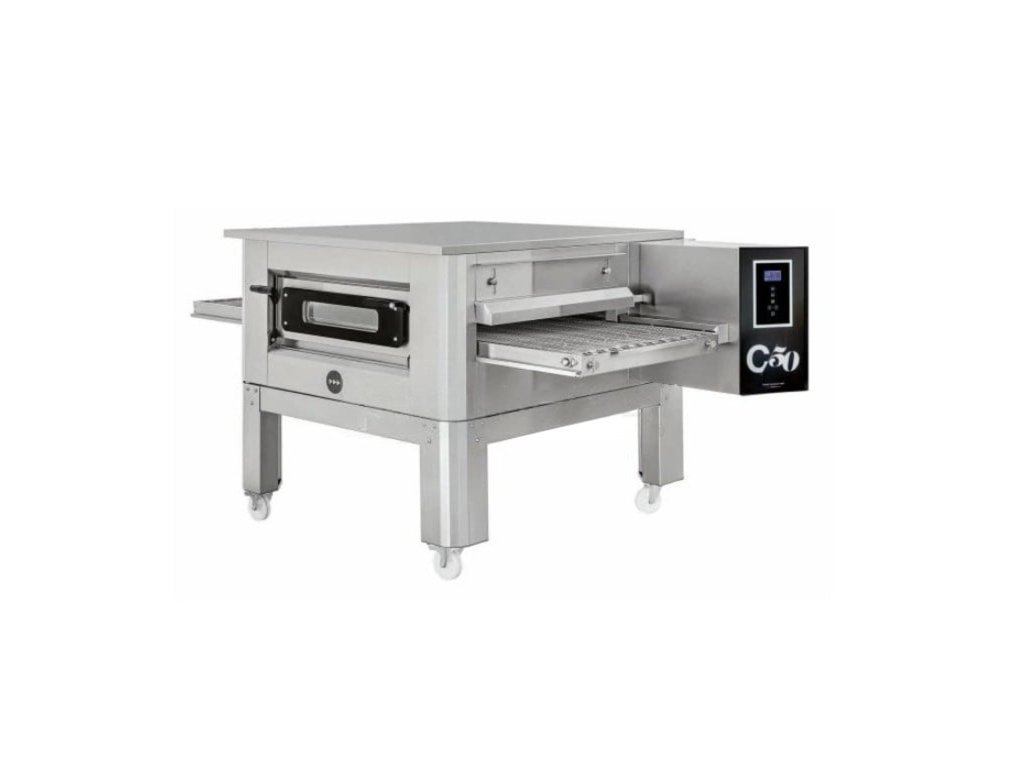 Jednoduché elektronické ovládanie s displejom a možnosťou nastavenia času zapnutia/vypnutia, rýchlosti posuvu pásu a nastavenia teploty horných a spodných telies. Úspora až 30% energie oproti tradičným „statickým” pizza peciam. Pece je možné využiť okrem pečenia pizze, tiež na pečenie chleba, plochých ciest, pizza tyčiniek „grissini”, ale aj na prípravu zeleniny a mnoho ďalších gastronomických špecialít. Presklené dvere umožňujú kontrolované pečenie a ľahký prístup na čistenie komory.