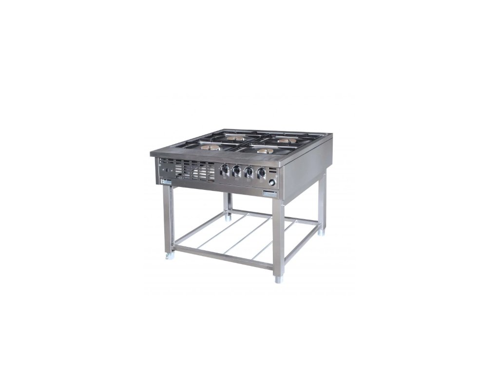 - Na hospodárne využitie spotrebiča má pravý predný horák menší príkon. Hlavný uzatvárací plynový kohút je ovládaný z pravej hornej prednej časti ovl. panelu kľúčom. Z čela pod ovládacím panelom je umiestnená výsuvná odkvapová misa pre pretečené varivo.