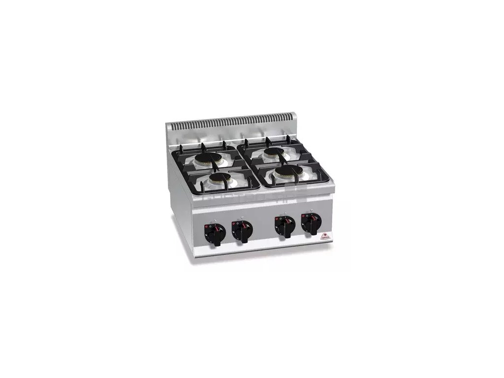 Pracovná plocha a opláštenie z nerez ocele AISI 304. Liatinový horák s poistným termostatom.