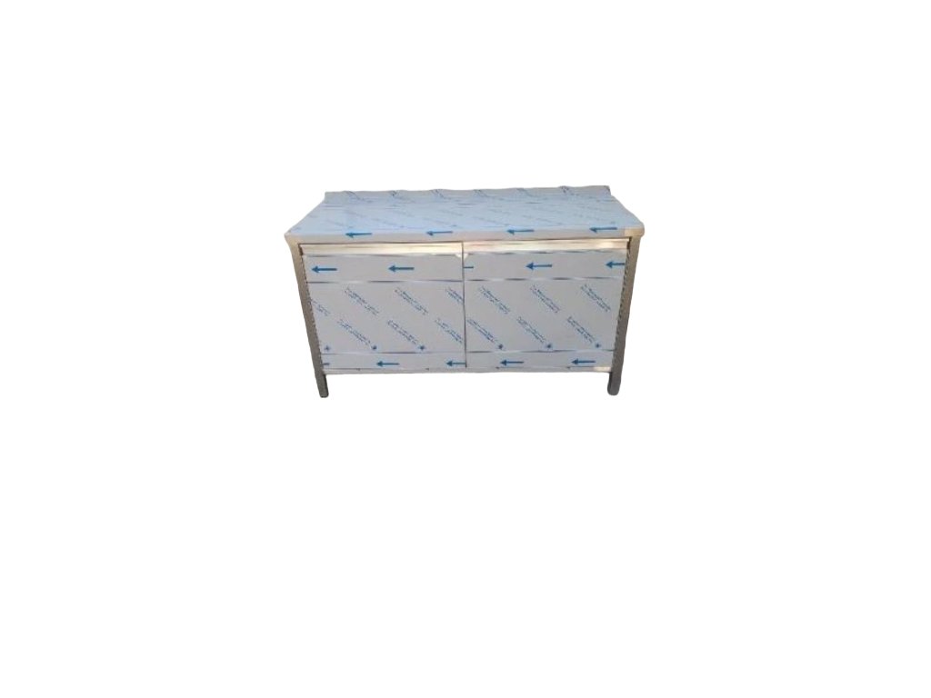 Pracovný nerezový stôl oplechovaný s dvierkami a policami, rozmer (šxhxv): 1400 x 800 x 900 mm