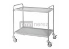 Vozík v nerezovom prevedení s 2 policami, štyrmi otočnými kolieskami (Ø100mm, 2x brzdená). Police s prelisovaným zdvihnutým okrajom a spodnou tlmiacou vrstvou.