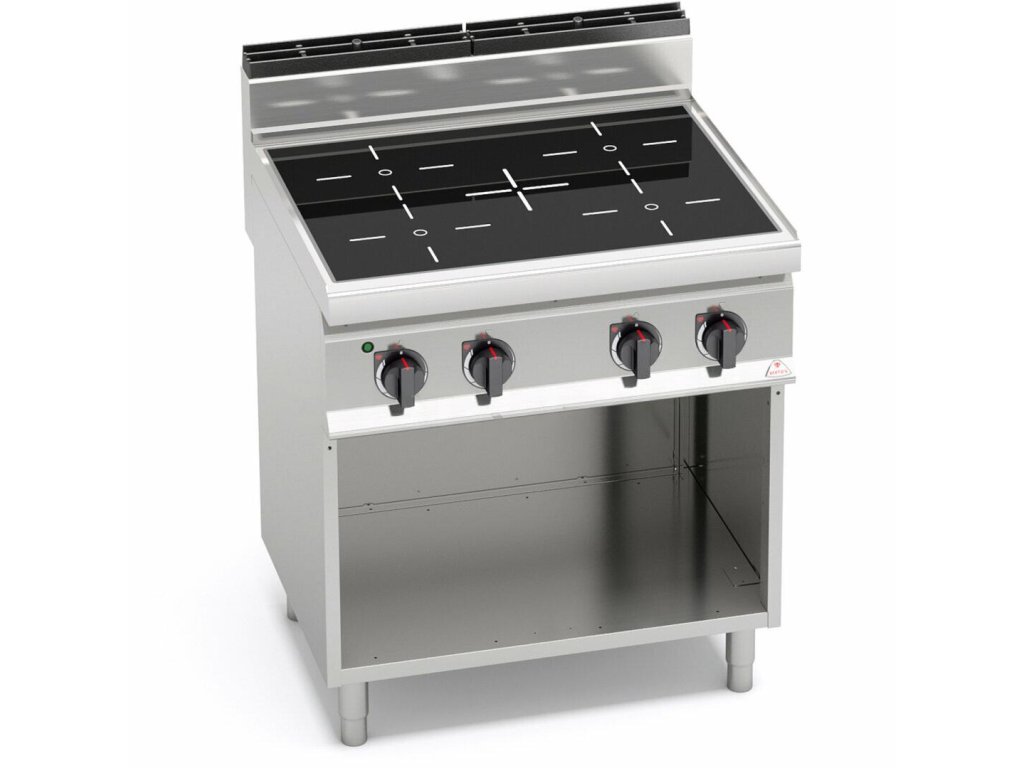 Elektrický sklokeramický sporák s podstavcom E7P4M/VTR, BERTOS sk eramickou varnou doskou s hrúbkou 6 mm. Elektrické vykurovacie telesá s Ø250 mm a výkonom 2,5 kW dosahujú pri varení v kruhových zónach. Plochy zón sú označené špeciálnym serigrafom, podľa ktorého je určená správna poloha hrnca. Sporák BERTOS počas sekúnd dosiahne teplotu až 500 °C.