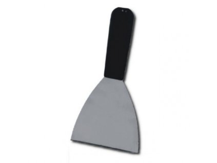 Nerezová flexibilná špachtľa s čiernou polypropylénovou rukoväťou.