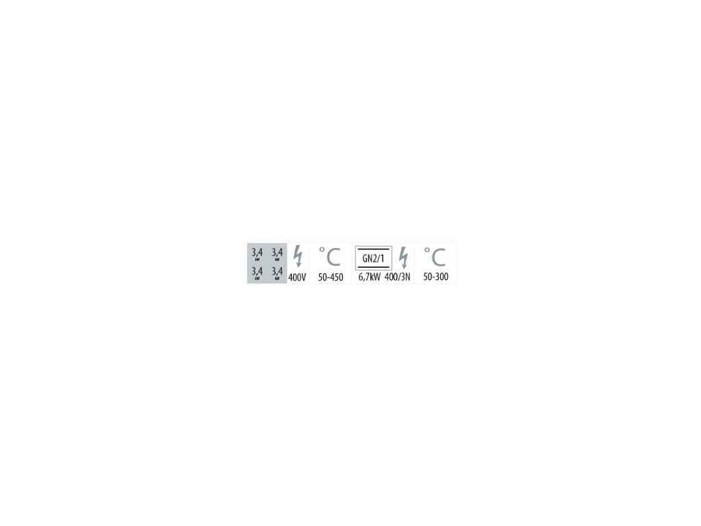 - Príkon rúry: 6,7 kW, Napätie rúry 400 V