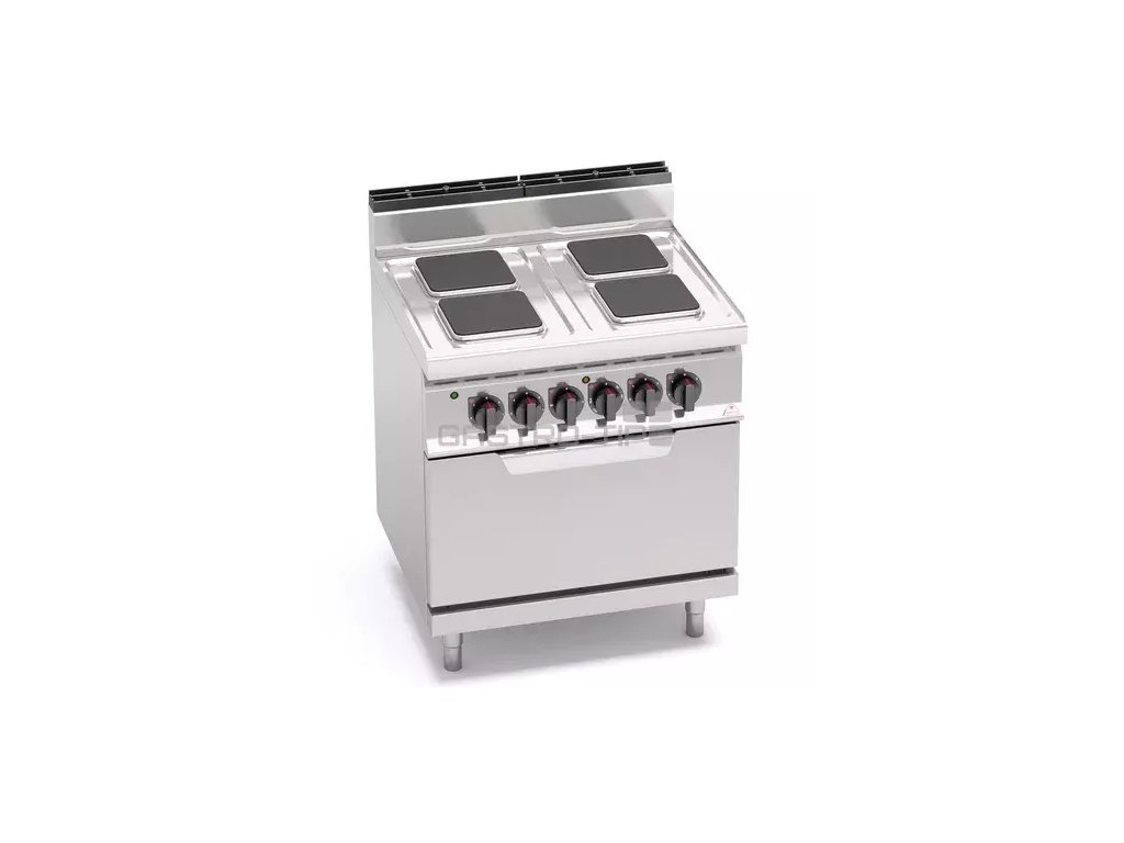 Liatinová varné platničky s bezpečnostným termostatom a reguláciou výkonu. Konvekčná rúra vhodná pre GN 1/1, alebo model so statickou multifunkčnou rúrou pre GN 2/1. Rúry majú novo zosilnené liatinové dno a sú vybavené kvalitným tesnením dverí.