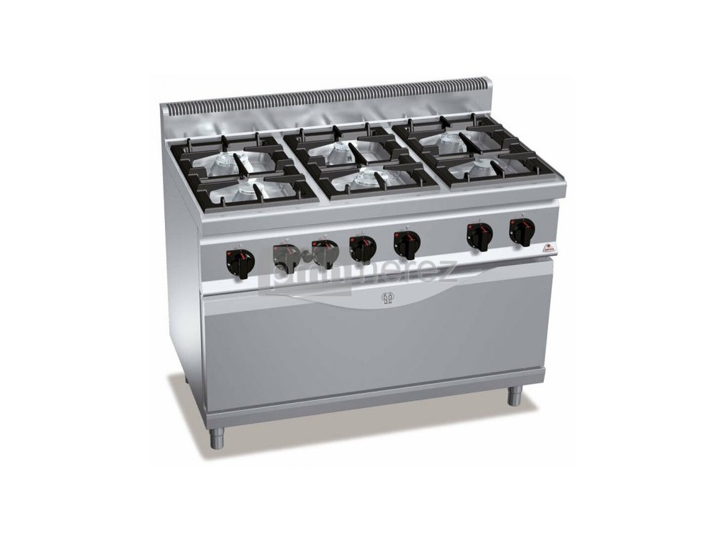 Pracovná plocha a opláštenie z nerez ocele AISI 304. Výkonné liatinové horáky HIGH POWER, ľahko demontovateľné a umiestnené vo vyberateľných prelisovaných smaltovaných (nerezových) odkvapových vaniach.