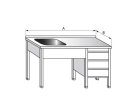 Stůl mycí jednodřezový s pracovní plochou a zásuvkovým boxem