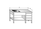 Stůl mycí jednodřezový s pr.plochou, policí a zás.boxem