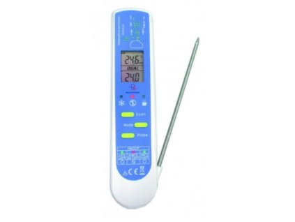 Bezkontaktný teplomer s infračerveným zameriavaním a kontaktného merania sondou. Vybavený LCD displejom pre zobrazenie nadmerných hodnôt, 3 LED diódami pre indikáciu teplotného...
