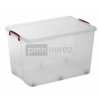 Transparentný catering box 120 L na kolieskach. Stohovateľné bez veka aj po uzavretí vekom. Maximálna nosnosť je 40 kg. Rozmer 500 x 790 x 415 mm.