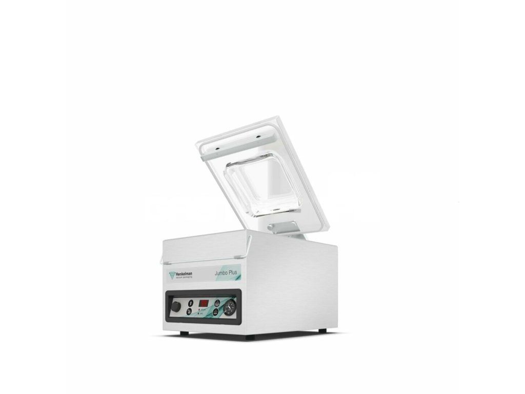 Predĺžte trvanlivosť mäsa, hydiny, rýb, syrov, zeleniny a ďalších potravín vrátane tekutín. Ochráňte ich pred pôsobením vonkajších vplyvov. S výkonnou, profesionálnou a spoľahlivou jednokomorovou vákuovou baličkou Jumbo 30 od holandskej firmy Henkelman to pôjde ľahko. Vákuová komora so zaoblenými rohmi má dĺžku komory 370 mm, šírku lišty 350 mm (max. šírka vrecka) a výšku komory 150 mm a dokonale uchová trvanlivosť produktov.