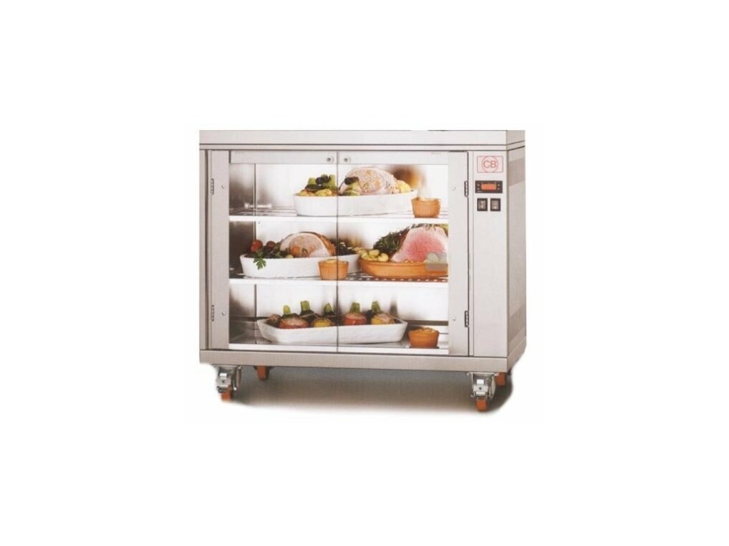 - Presklený z dvoch strán, pojazdný, vnútorné osvetlenie.