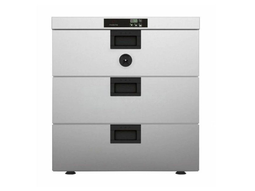 rohy nedochází k tak velkému znečistění komory, což výrazně usnadňuje její čistění. Šetrný provoz, snížení ztrát, úspora elektrické energie. Zásuvky s kvalitními pojezdy pro snadno manipulaci, 100% výsuvné (snadná vyjmutí a vkládání GN) a kapacitou pro GN 1/1 hloubka 150 mm. Zařízení je dodáváno bez GN.