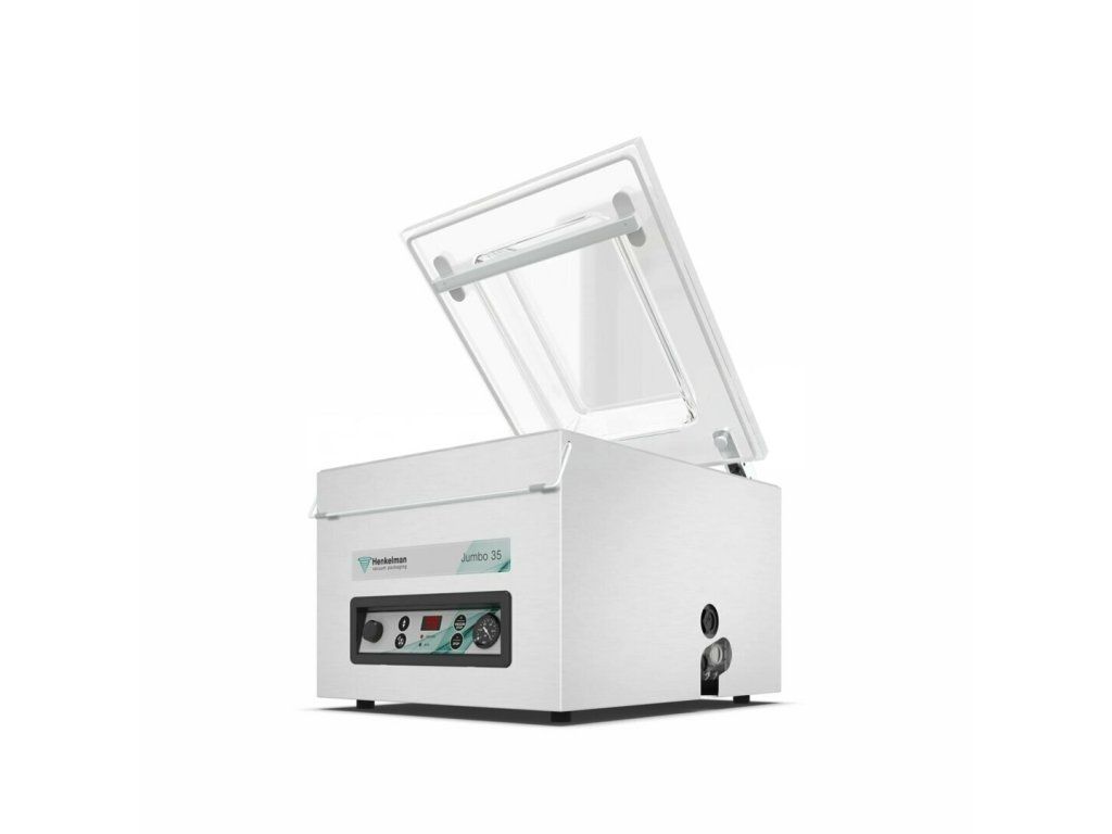 Prodlužte trvanlivost masa, drůbeže, ryb, sýrů, zeleniny a dalších potravin včetně tekutin. Ochraňte je před působením vnějších vlivů. S výkonnou, profesionální a spolehlivou jednokomorovou vakuovou baličkou Jumbo 35 od holandské firmy Henkelman to půjde snadno. Vakuová komora se zaoblenými rohy má délku komory 370 mm, šířku lišty 350 mm (max. šířka sáčku) a výšku komory 150 mm a dokonale uchová trvanlivost produktů.