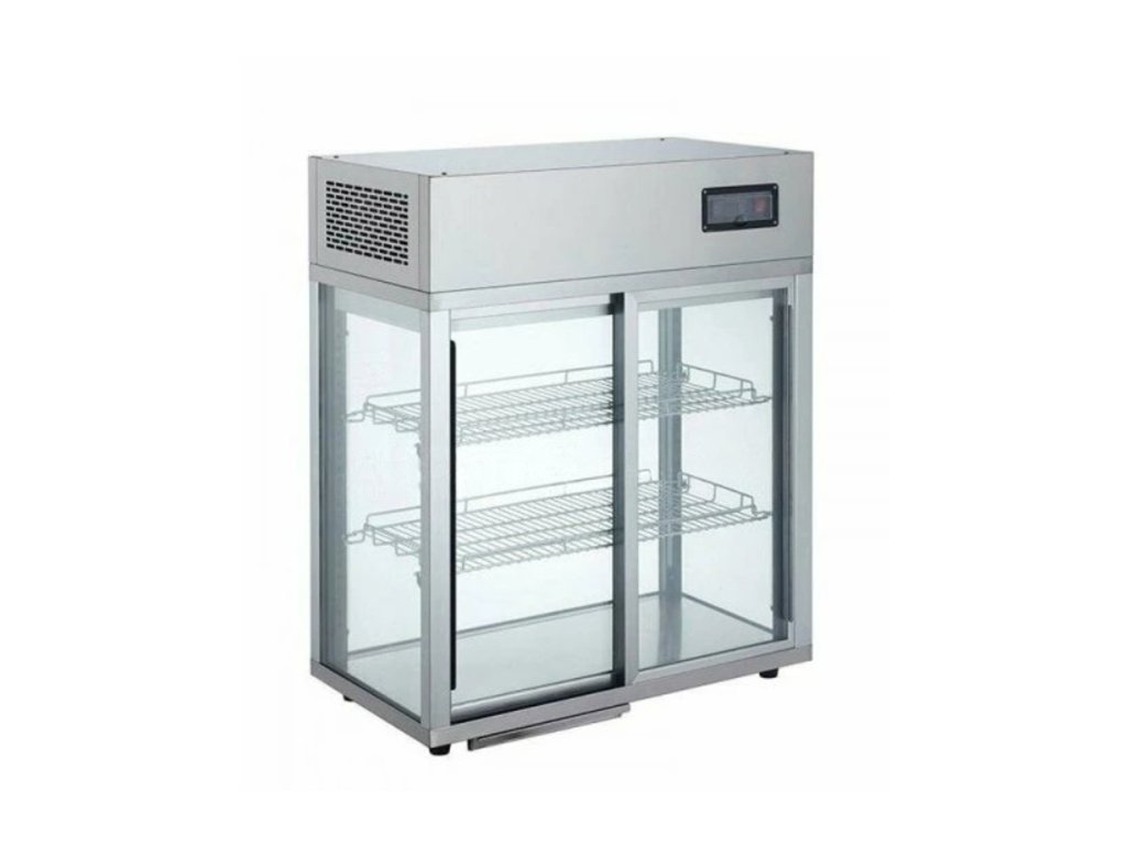 Chladicí pultová panoramatická vitrína RT-177L s ventilovaným chlazením, určena k prezentaci a prodeji potravin a nápojů. Vitrína je v elegantním nerezovém provedení a prosklená ze tří stran, má izolovaná skla. Ze strany obsluhy vybavena snadno posuvnými obslužnými dvířky s trojitým sklem a digitálním ovládáním a zobrazením teploty. Prezentaci uložených potravin umocňuje intenzivní 4× LED osvětlení umístěné v rozích vitríny (neohřívá vnitřní prostor a výrazně napomáhá prezentaci a prodeji ve všech patrech). Vitrína s vestavěným agregátem, ventilovaným chlazením s automatickým odtáváním, ovládána digitálním regulátorem se zobrazením teploty. Dvě chromové stavitelné police. Nastavitelné nožičky.