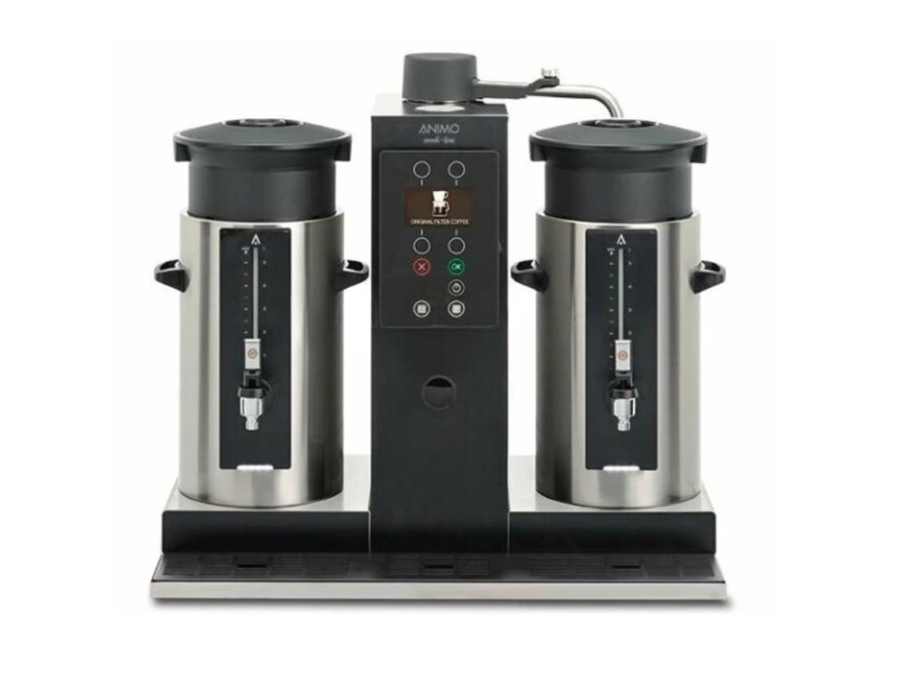 Zařízení Animo ComBi-linie nabízejí možnost připravovat velké množství kávy a čaje v krátkém čase. Výroba horké vody je prováděna v kontinuálních průtokových ohřívačích, které dávkují vodu do jednoho, nebo dvou zásobníků vybavených speciálním filtrem. Kávovary mohou být umístěny na pracovním stole, nebo na speciálním servírovacím vozíku. Vždy lahodná překápávaná káva, nebo čaj, každý vydaný šálek kávy nebo čaje chutnat jako právě připravený. Combi řada je založena na systému rychlého filtrování přes papírový (permanentní filtr) s kávou je vložen do speciálního syntetického držáku). Vyrobená horká voda je dávkována otočným ramenem a prochází přes filtr s kávou do izolovaného udržovacího výdejního zásobníku vybaveného hladinoměrem s ryskou náplně a automatickým nekapajícím výdejním kohoutem. Příplatkové příslušenství (nerezový filtr na čaj, permanentní filtr na kávu, prodlužovací nástavce na kohout, konvice). Snadné ovládání pomocí LC-displeje, automatické přerušení cyklu při odebrání zásobníku, snadné programovatelné řízení, regulace udržovací teploty vyrobeného nápoje (automaticky), vybaven čistícím programem, počítadlo denního a celkového výdeje, signalizace stavu náplně na vodoznaku zásobníku, automatický nekapající kohouty zásobníků. Pevné připojení vody 3/4”, přepad hadičkou